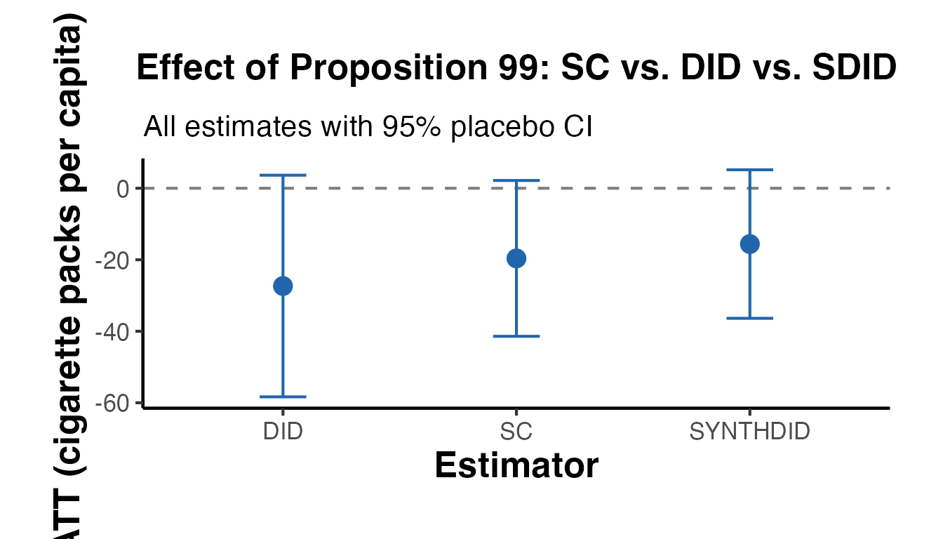 # Estimate the effect of California Proposition 99 on cigarette consumption