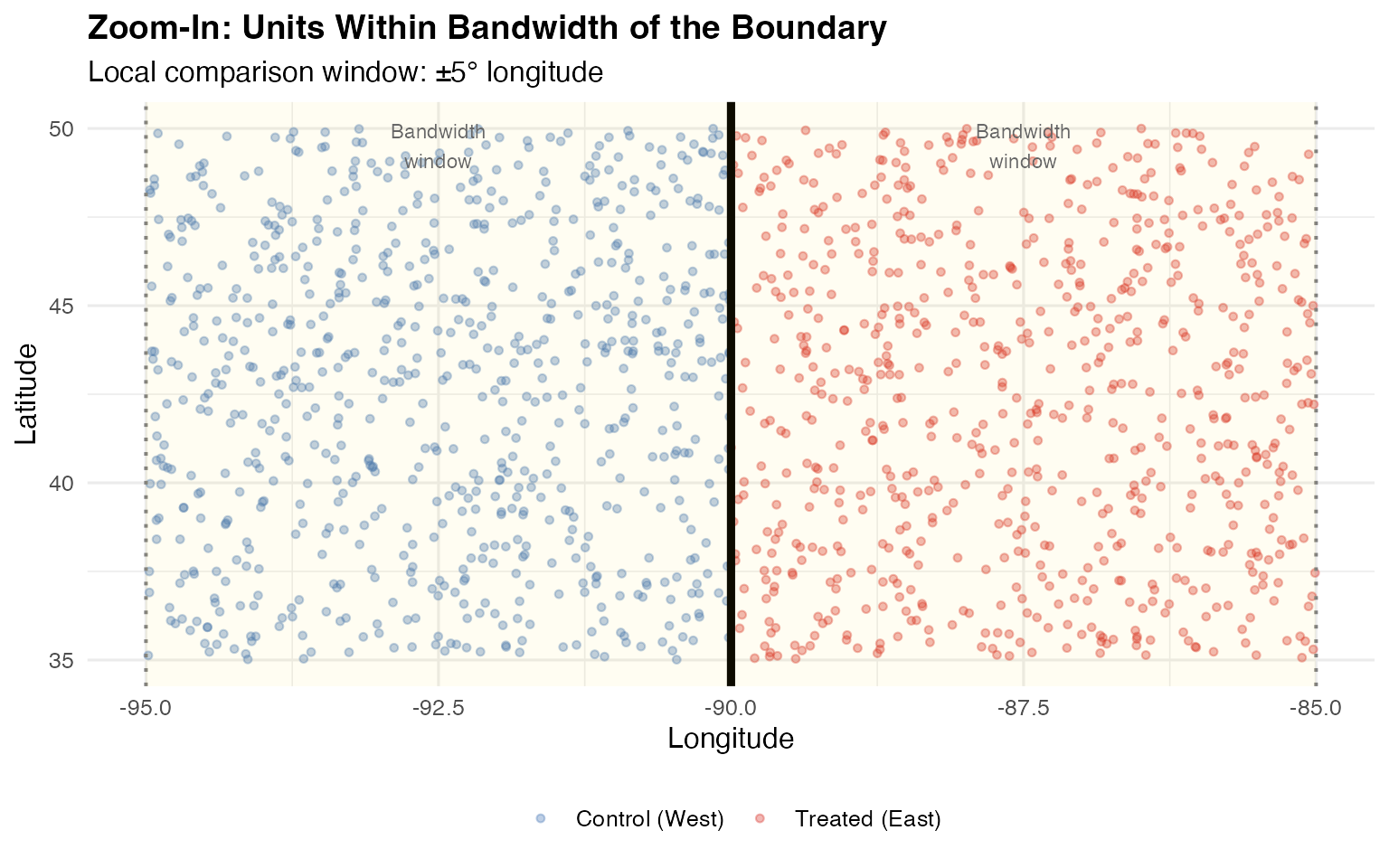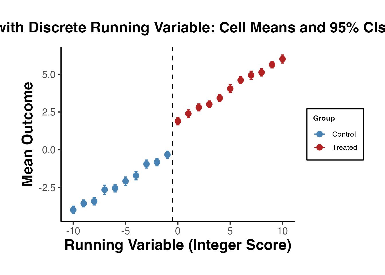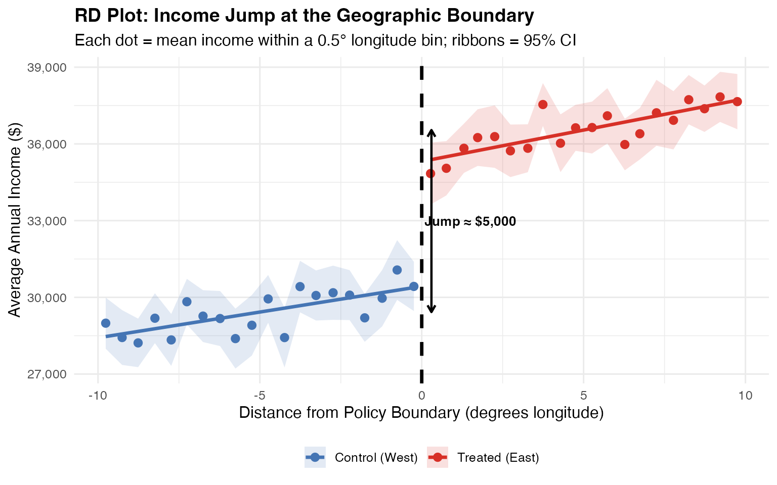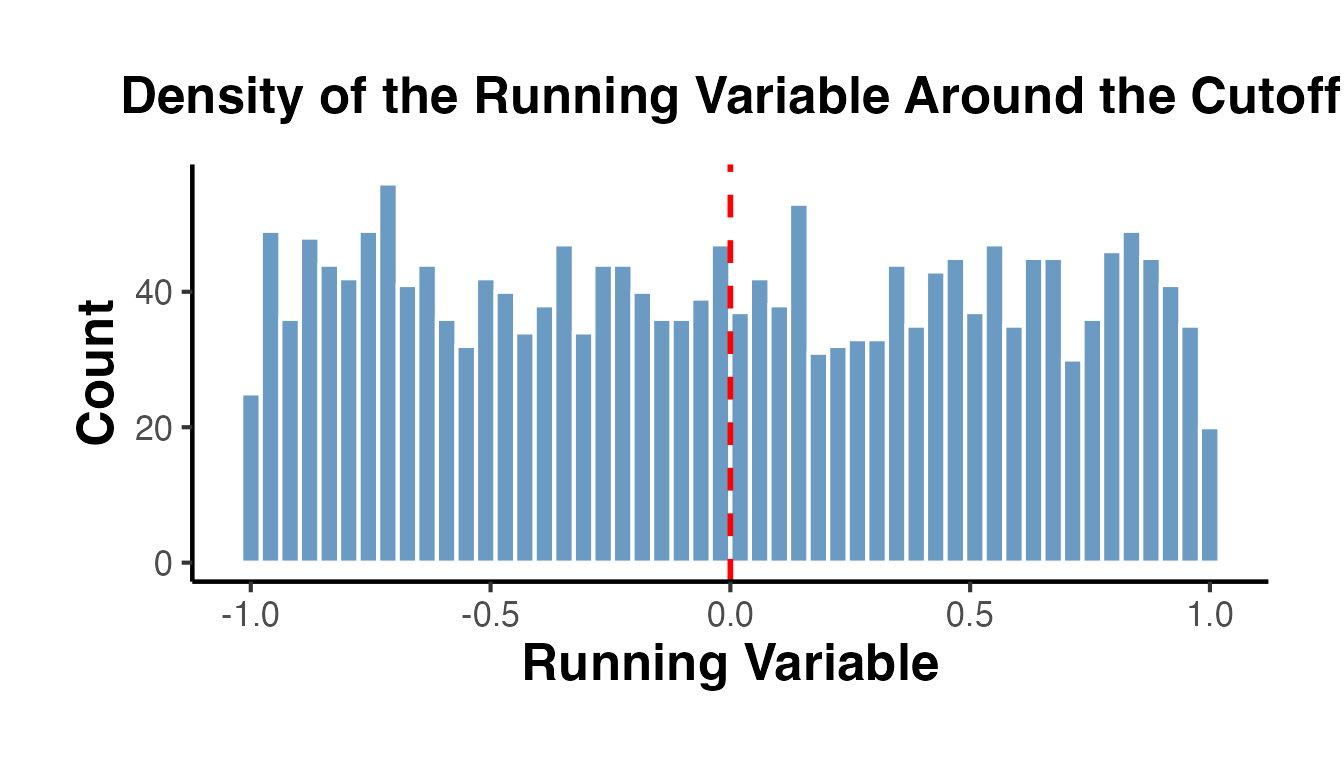 cat("Treated:", sum(rd_data$treated), "| Control:", sum(1 - rd_data$treated), "\n")