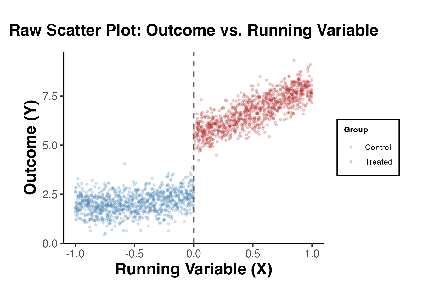 title = "Raw Scatter Plot: Outcome vs. Running Variable"