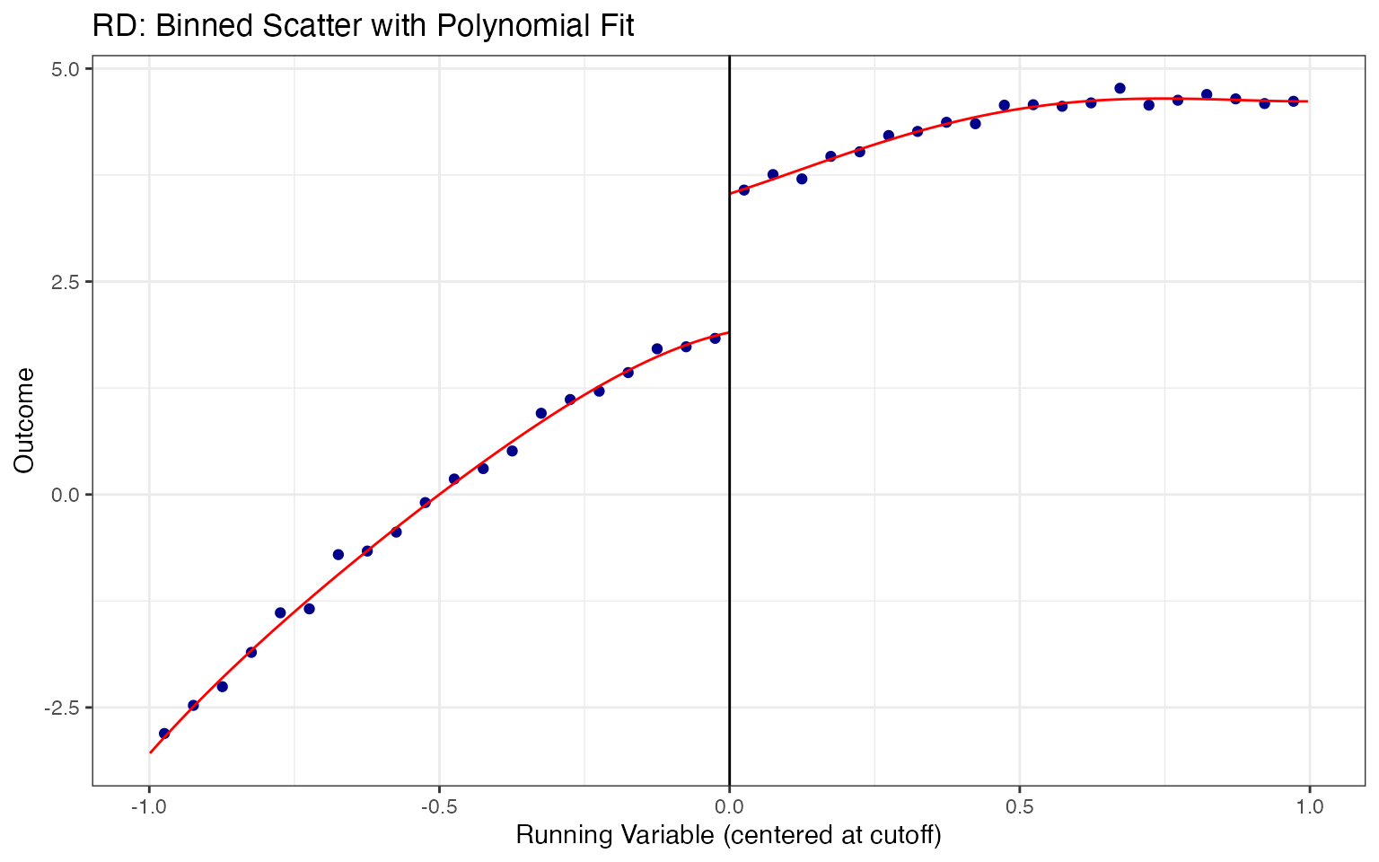cat("True treatment effect at cutoff:", 3, "\n")