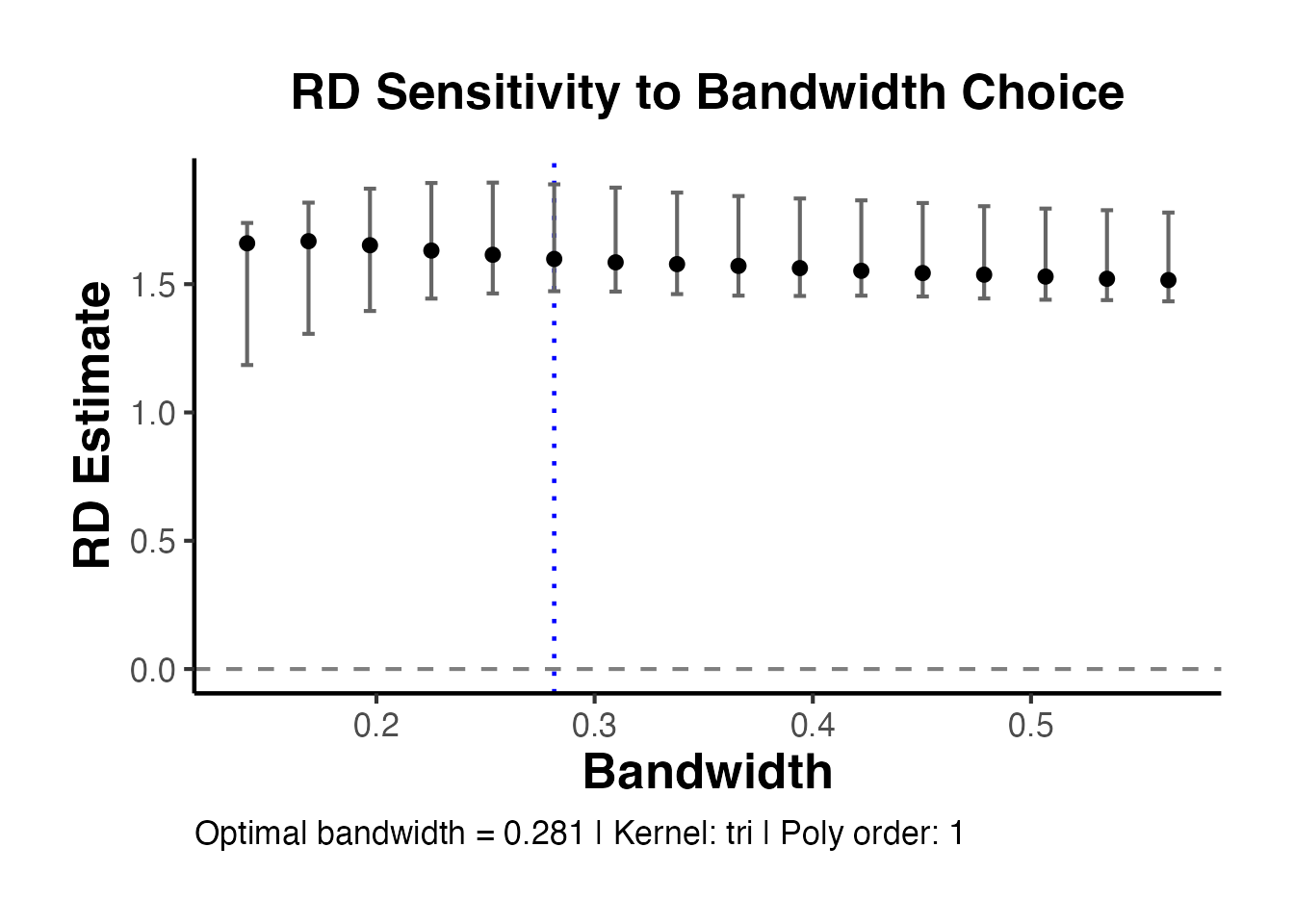 cat("Bandwidth sensitiv: Estimate stable across 0.5x-1.5x bandwidth\n")