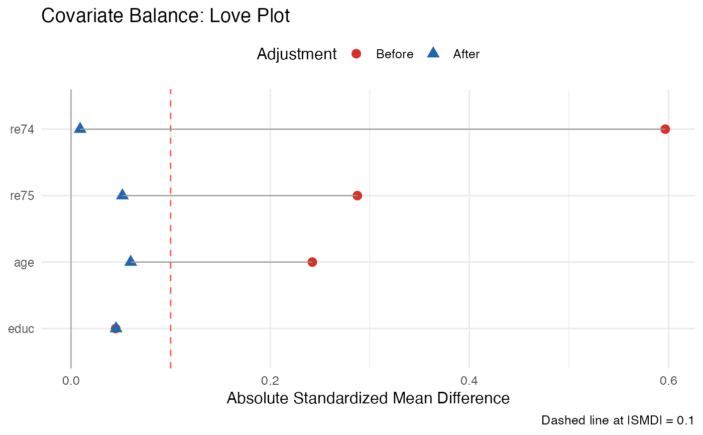 Love, T. E. (2002). Displaying covariate balance after adjustment for selection bias: An application in healthcare. Annual Conference of the American Statistical Association.