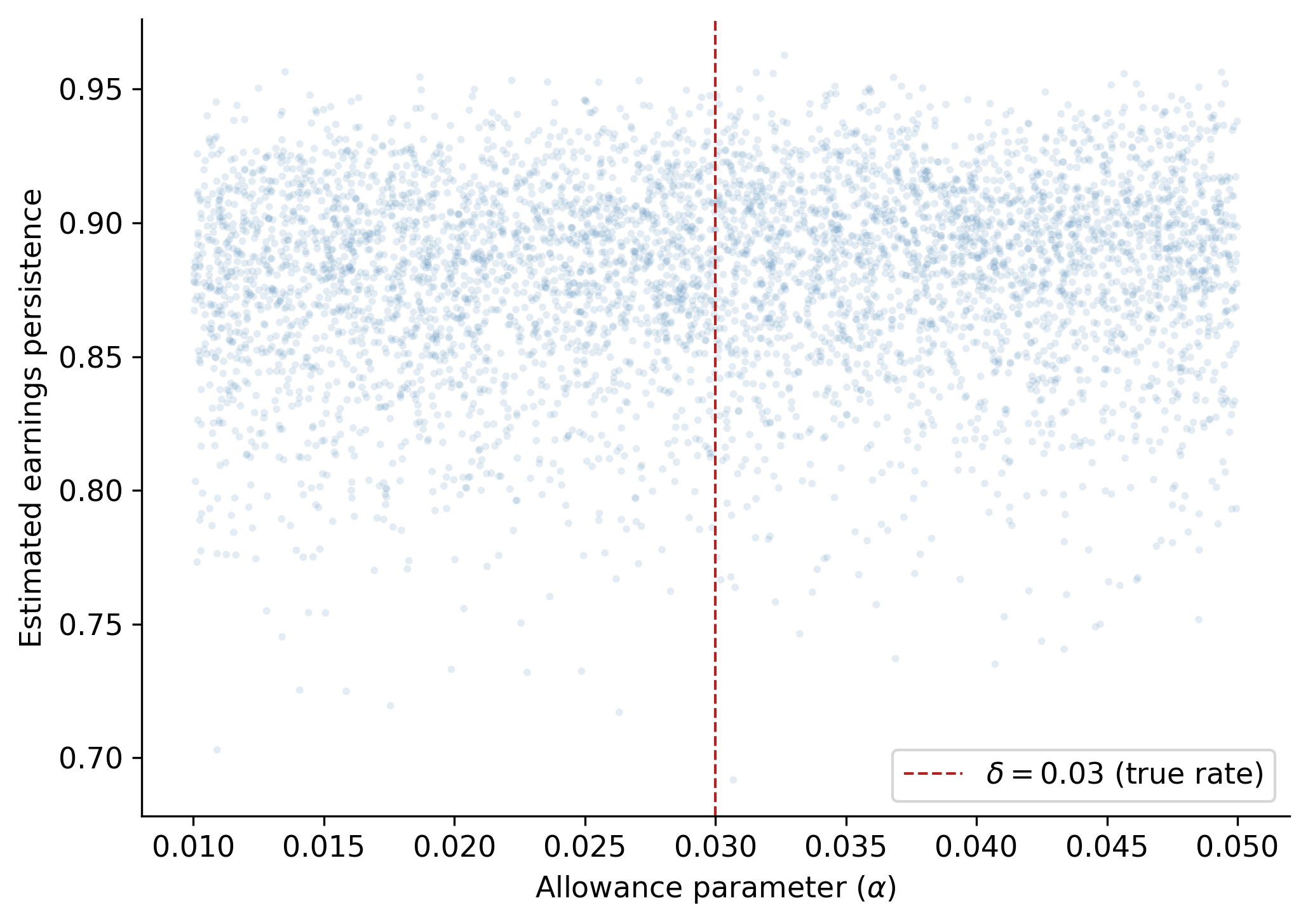 The key parameter of interest is \(\alpha\), the managerial estimate of bad debts. When \(\alpha = \delta\) (the true default rate), the accounting system is unbiased. When \(\alpha \neq \delta\), accruals contain estimation error that affects persistence.