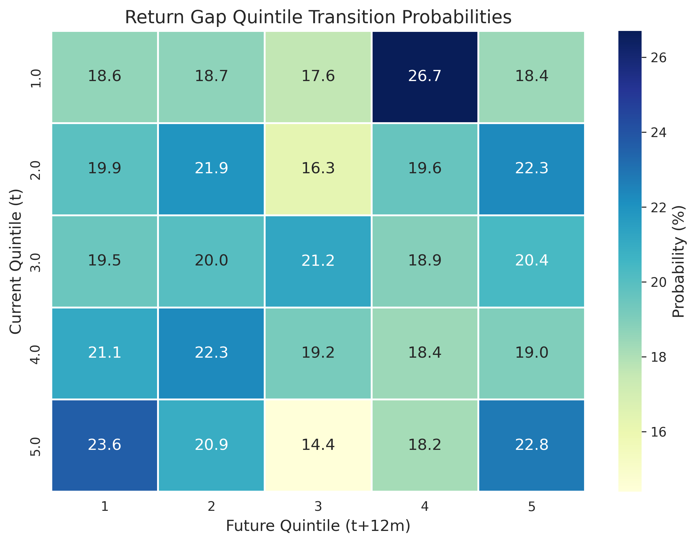 - Performance persistence: Funds in the highest Return Gap decile tend to outperform those in the lowest decile by 1-2% annually on a risk-adjusted basis, and this spread persists over time (Kacperczyk, Sialm, and Zheng 2008).